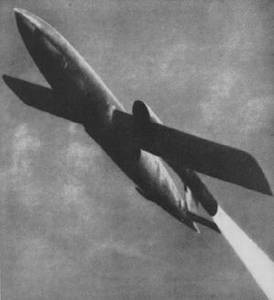Lancé au moyen d'un piston, à partir d'une rampe fixe, le V1 recevait une impulsion qui permettait de lancer son moteur Argus As 014, de 300 kg de poussée. Ensuite, l'engin accélérait pour atteindre une vitesse de croisière de 560 km/h. Il se plaçait alors sur la trajectoire choisie, entre 900 et 1200 mètres. Son réservoir de 680 litres mettait l'Angleterre méridionale à sa portée. Ses 850 kg de RDX, de nitrate d'ammonium ou de TNT étaient munis de deux fusées à percussion, a système mécanique ou électrique et d'une fusée à retardement. Des V1 pilotés précédèrent la version téléguidée. Sous le nom de Fi 103, ils furent construits par la firme Fieseler qui, plus tard, fabriqua les modèles téléguidés.
