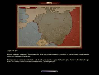 Nous passons donc par un premier écran qui par une carte de fin de Reich, situe l'action de notre mission et son contexte. Notre mission se déroulera donc sur les hauteur de Vienne en mars 1945 et comme commandant allemand nous devons combattre les soviétiques.