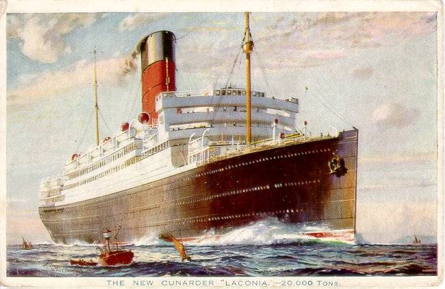 Puis l'amiral consulte le grand-livre du shipping anglais et lit : « Laconia. Lancé le 15 mai 1922 à Newcastle. Port d'attache : Liverpool. 19 695 tonneaux, longueur 183 mètres, largeur 22 mètres, vitesse 16 noeuds. Cunard White Star Line. » |