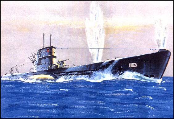 Un quart d'heure plus tard, l'U-156, sous marin de 1 120 tonnes (surface), avec 250 individus à son bord descendait à 50, 60 100 mètres sous la surface de la mer et ce durant une heure vingt-trois minutes.