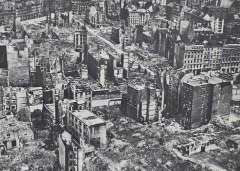 C'est sur ces marqueurs, finalement, que les vagues successives de bombardiers lâchèrent leur cargaison : les énormes bombes de 3600 kilos et les blockbusters (souffleurs de pâtés de maisons) de 1800 kilos par vingtaines, les bombes de 450 kilos par milliers et une véritable pluie de bombes incendiaires de 2 kilos.