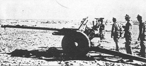ici, un Pak 36(r) en plein desert s'apprete à faire feu sur des chars Anglais