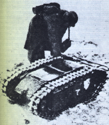 Un grave fiasco parmi les "armes secrètes " allemandes Cet engin était une "charge explosive automotrice téléguidée" prévue pour être lancée Voir la vidéo (840 ko en .zip)