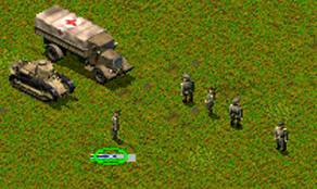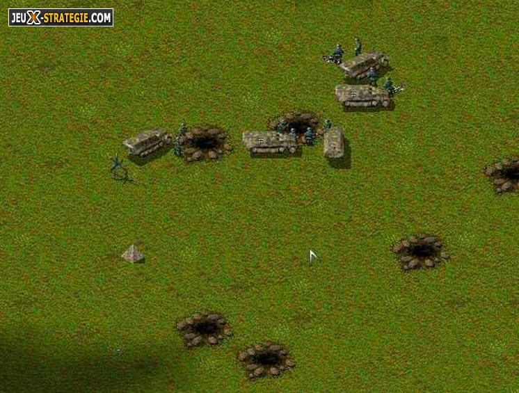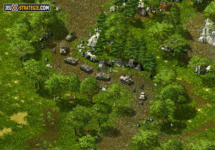 Citons également une nouveauté remarquable : vous connaissiez les officiers et généraux présents dans le jeu de base, et bien ont été ajoutés plusieurs niveaux de commandement ; le caporal, qui améliore le niveau de ses hommes, le sergent et le commandant (ou colonel). Ce dernier possède des jumelles plus performantes. Enfin vous trouverez un général spécifique par nation, désigné nominativement (par ex : De Gaulle ou Guderian), et surpassant les autres officiers. Ceci entraîne la contrainte de rester logique : on conviendra qu'il est dans la plupart des cas impossible de trouver plusieurs De Gaulles sur une seule carte... ce qui rend le Général une unité très convoitée car unique et irremplacable, le Commandant étant légèrement moins performant. Vous vous rendrez compte assez rapidement que la maîtrise de cette hiérarchie vous apportera un avantage certain. APRM introduit ici avec brio et de manière historique la notion de "héros", si présente dans tous les autres STR, et qui manquait à la série. Une idée pour Sudden Strike 3 ?