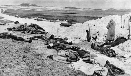 Les Allemands, qui cherchaient l'emplacement de certains réservoirs de pétrole, avaient complètement dévasté un cimetière. Les restes des morts de la guerre de Crimée étaient éparpillés et leurs cendres imprégnées de sang frais. Derrière le cimetière s'étendait une zone si durement bombardée qu'il était impossible de savoir où il y avait eu des rues ou des maisons. Là, dans les cratères remplis d'une eau sanglante, flottaient des mains, des membres, des troncs d'enfants.