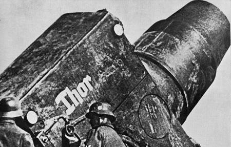 Dans le cadre de l'artillerie traditionnelle qui pilonnait les fortifications de Sébastopol, il faut citer trois géants qui font désormais partie de l'histoire des guerres : le mortier « Gamma », le mortier « Karl », qu'on appelait également «Thor », et le canon « Dora », qui était sur voie ferrée. Ces trois merveilles représentaient alors l'aboutissement de l'évolution en matière d'artillerie conventionnelle et avaient été spécialement étudiées pour la guerre de forteresse. En dehors des forts belges et de la ligne Maginot française, il n'y avait guère que Brest-Litovsk, Lomtcha, Kronstadt et Sébastopol comme forteresses dignes de ce nom.