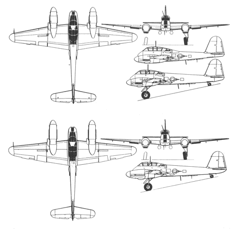 Au début de l'année 1944, Messerschmitt travaillait sur une version allongée Me 410, à laquelle avait été attribuée la dénomination de Me 410 C. Conçu pour fournir de bonnes performances à haute altitude, celui-ci pouvait emporter une lourde charge offensive et, pour certaines versions, un radar destiné aux interceptions de nuit. Il comportait des moteurs turbo compresseurs (Jumo DB 603 JZ, Jumo 213 EJZ ou encore BMW 801 TJ) actionnant des hélices quadripales.
