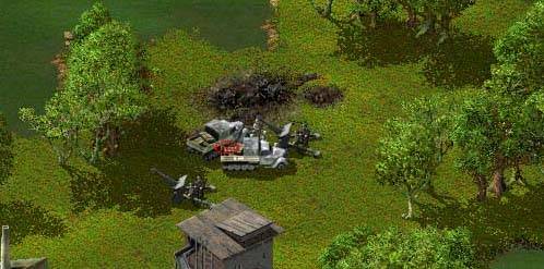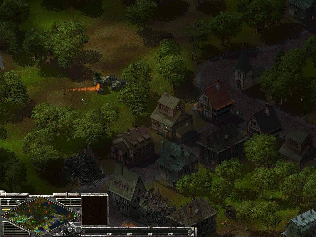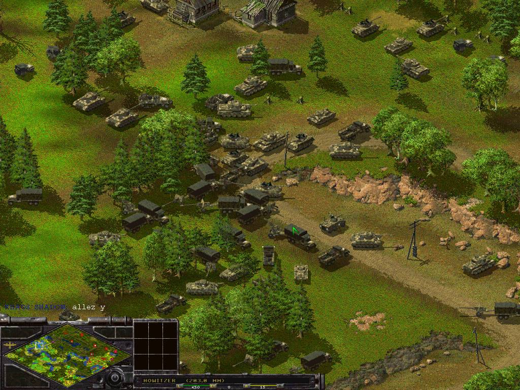 Juste à titre d'exemple, j'ai réussi de cette manière à exploser un Katyu ennemi ! et au lance flammes :). Il m'a suffit de cacher un homme dans une maison en suspension de tir pour voir arriver un Katyu flambant neuf. Si vous regardez bien la mini carte, vous pouvez voir que le front était beaucoup plus bas. Comme quoi, ce n'est pas une tactique qui ne paie pas. Ainsi mon homme s'est approché tranquillement pour réchauffer les tubes à roquettes de ce Katyusha sans défense ! Depuis ce temps, mon ami TENKILL (ex propriétaire dudit Katyu) est allé séjourner en Sibérie :). Alors, n'hésitez pas à ruser. L'avantage de cette tactique est de pouvoir anticiper les déplacements ennemis, vous aurez alors un net avantage. Pour résumer : essayez de cacher vos troupes le plus possible derrières les arbres, dans les baraquements etc … Bien sûr, il faudra bien mémoriser leurs emplacements, mais vous pourrez toujours les visionner en plaçant le curseur de votre souris dessus, l'arbre devenant ainsi légèrement transparent ou bien si vous cliquez sur la maison dans laquelle est placé votre soldat, vous verrez affiché en haut à gauche de votre écran le(s) soldat(s) présents. |