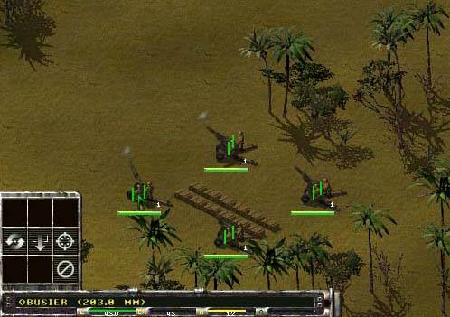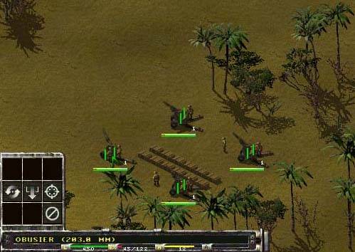 | Afin d'exploiter au mieux cette puissance de frappe, il convient de bien les placer. Attention, évitez de les laisser trop prêt les uns des autres. Si par malheur, l'ennemi découvrait l'endroit où ils se cachent, vous perdriez quasiment tout. Le mieux est de les espacer tout en laissant un camion à porter pour pouvoir les déplacer très rapidement. A noter que vous devez placer à leur côté des ravitailleur voire des caisses de munitions que vous pouvez transporter à l'aide des camions et que vous déposerez non loin de vos obusiers, lesquels se ravitailleront automatiquement. En effet, bien que leur cadence de tir soit longue, ils ne possède d'une quinzaine d'obus. Alors, prenez garde à ce qu'ils puissent être ravitaillés. | |