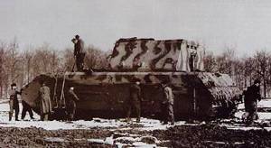 Ci dessus deux photos surement prises par les Russes d'un des deux prototypes que les Allemands ont éssayés de détruire à la hâte. Les deux photos représentent le méme char sous deux angles différents, c'est surement de ce char qu'a été prise la tourelle pour complétez avec le chassis pris sur le prototype numéro 2, donc ce char est probablement le prototype numéro 1.