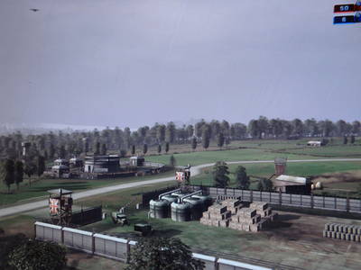 Voici un dépôt britannique, vous pouvez voir entrer et sortir des camions chargés qui se dirigent vers votre quartier général, ou vers un 2ème QG secondaire que vous aurez construit assez loin de votre première base, pour vous permettre de recevoir plus rapidement les ressources, mais aussi pouvoir construire des bâtiments rapidement autour de celui-ci, puisque les véhicules de construction sortent de votre QG :