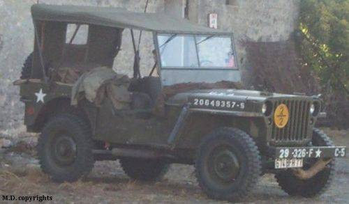 Je suis arrivé le vendredi midi juste aprés l'heure du déjeuner :(, c'est donc le ventre vide que l'on m'annonce à peine arriver qu'il faut immédiatement partir sur Isigny-sur mer. Je pose mon packtage en vitesse dans ma chambrée, je m'équipe je prend mon fusil (démilitariser biensur) mon casque et hop c'est parti, on embarque dans les gmc d'époques numérotés comme les vrais véhicules de la division de l'époque. Nous avions environ 4 jeeps, 1 halftrack, 2 gmc, un dodge tous en état de marche avec lesquels on se déplacaient dans toute la région. Nous sommes arrivés sur place, puis nous nous ommes mis en formation autour du monument en attendant les vétérans qui ne sont arrivés qu'une heure et demi aprés, donc en attendant nous avons eu l'orde "dissmissal" c'est à dire quartier libre en gros, nous sommes allés nous abrités du soleil sous les arbres et nous avons présentés nos équipements aux nombreux enfants de la commune venus nous voir ainsi que les gens du village.