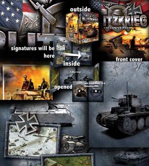 Cette compilation collector ne sera disponible qu'à 300 exemplaires, tous dédicacés à la main par Alexander Valencia Campo (Blizkrieg 1) et Ernst Stein (pour Burning Horizons, Rolling Thunder et Green Devils) ce qui vous explique le nombre limité !
