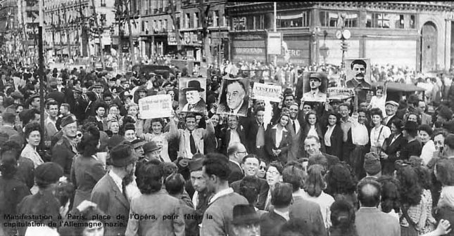C'est le moment de célebrer la paix retrouvée, paix qui mènera à des constructions comme l'Union Européenne, qui pour la première fois de son histoire a assuré plus de 50 ans de paix continue à l'Europe occidentale.