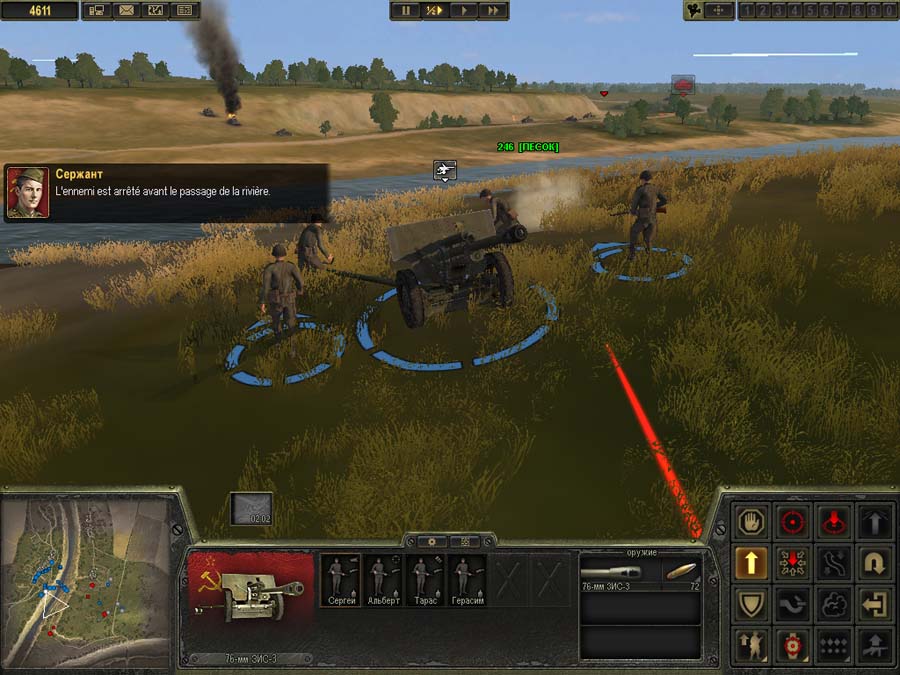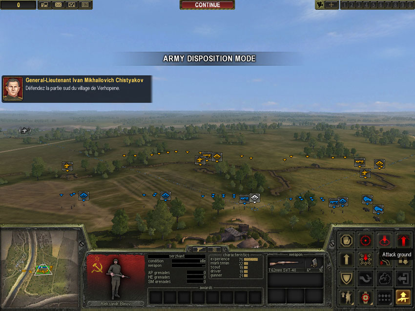 Il m'annonce aussi les renforts. Je dispose d'aviation, mais aussi de mes fameux 5 T34 que j'ai choisi dans l'écran de sélection des troupes au début.