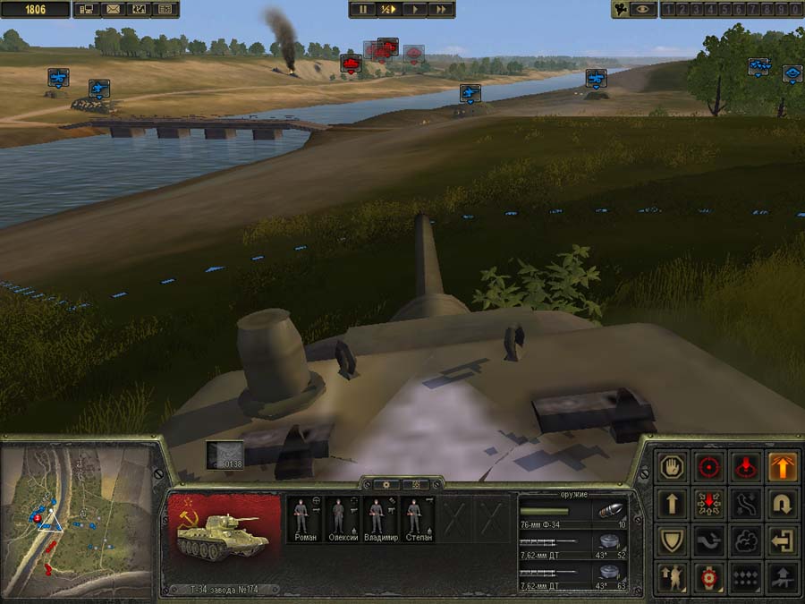 Mes premiers T34 arrivent en position sur la berge opposée à l'ennemi.