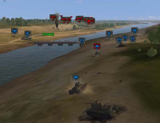 Sur l'autre flanc, j'aperçois avec horreur une colonne de blindé qui tente de forcer le passage le long de la rivière jusqu'au pont.