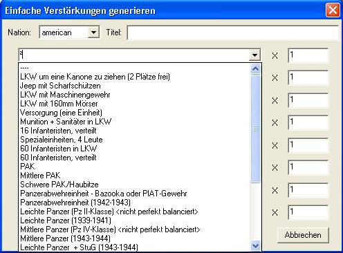 Une nouveauté dans la création des renforts, on peut maintenant générer des renforts « type » qui sont prédéfinis, avec 8 types de groupes possibles à ajouter par renfort et selon la nation. Autrement dit, il y aura certainement un gain de temps non négligeable, cette partie de création était aussi très longue sur l’éditeur Forever.
