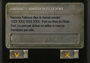| Via IP : Entrer l'IP de la partie à rejoindre L'adresse étant du type : XXX . XXX . XXX . XXX |
