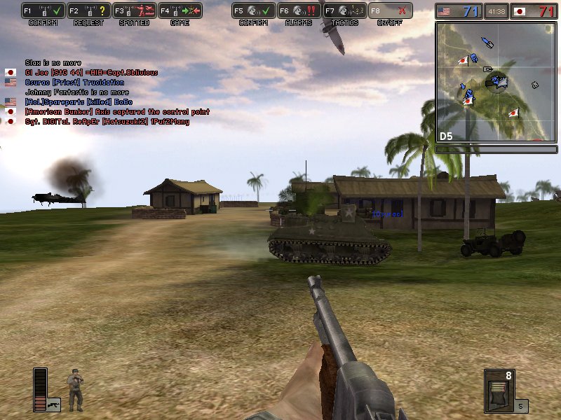 Un réel plaisir que de se retrouver aux commandes d'un char Sherman ou encore de faire décoller un "Zéro" japonais. La jouabilité est assez facile à prendre en main, surtout si vous êtes un habitué de ce genre de jeu. L'esprit d'équipe est très importante, vous pourrez par exemple monter à deux sur un char, l'un au commande des manettes de direction et du canon, l'autre au commande de la mitrailleuse. Il est même possible d'embarquer sur le châssis des collègues !