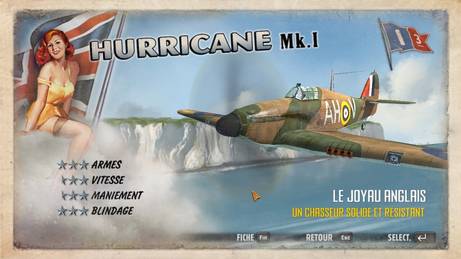 Le joueur pourra piloter au gré des missions une demi-douzaine d’avions au rang desquels se trouvent notamment les chasseurs Hurricane Mk. I, Spitfire Mk. Ia et Thunderbolt P-47B, ou encore les bombardiers Swordfish Mk. II et Mosquito NF Mk. V S2. Chaque avion possède des caractéristiques propres (armes, vitesse, maniement et blindage) et il appartiendra de choisir soigneusement son cheval de course lorsque celui-ci n’est pas imposé. Certaines missions requièrent en effet l’emploi d’un appareil déterminé. Il appartiendra de fait couler les navires allemands Gneisenau et Scharnhorst avec un bombardier Swordfish Mk. II, de défendre Londres avec un Spitfire Mk. Ia ou encore de bombarder Berlin avec un Mosquito NF Mk. V S2.