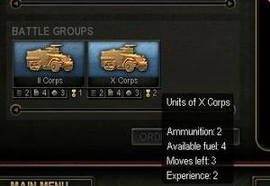Ajoutons que dans ce mode, sont aussi gérés le carburant de l'unité (donc sa capacité à se déplacer), la prise de zone stratégique accordant des renforts supplémentaires, la gestion des supports (artillerie, aviation...) et l'encerclement d'une unité ennemie (réduisant ses capacités).