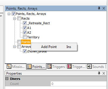 Un clic droit sur l'arborescence « point » permet de faire apparaître le menu « add point ».