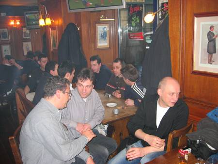 Première discussions au pub irlandais (au premier plan de g à dr. : Cham, Kikiller, Dimdoum)